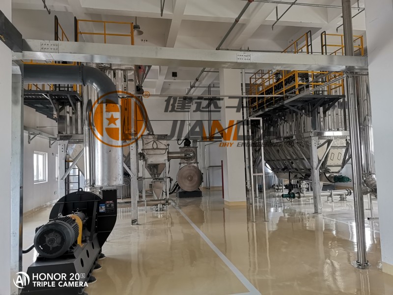 近日,我司工程师及安装调试人员将健达自主研发生产的加高型旋转闪蒸干燥机交付与用户,并顺利完成了安装,调试及验收工作,现两条生产线已顺利投产。